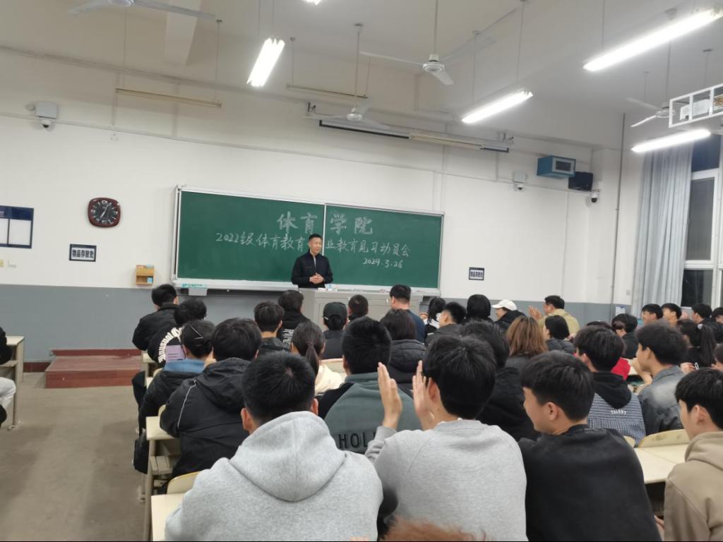 为了使2022级体育教育学生端正教育见习态度、明确教育见习目的及任务,保证教育见习工作顺利进行,PA集团官方网站于3月26日19:00在1208教室召开2022级体育教育专业教育见习动员会。
