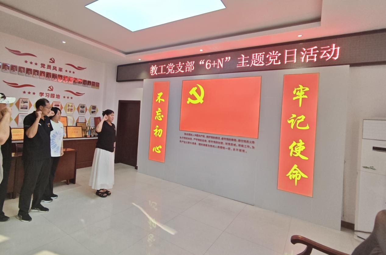 会议伊始,全体党员在鲜艳的党旗下,重温了入党誓词,以铿锵誓言筑牢政治忠诚。