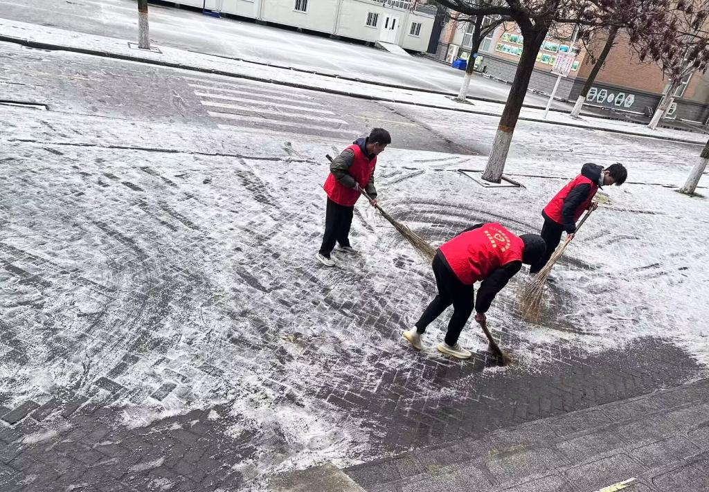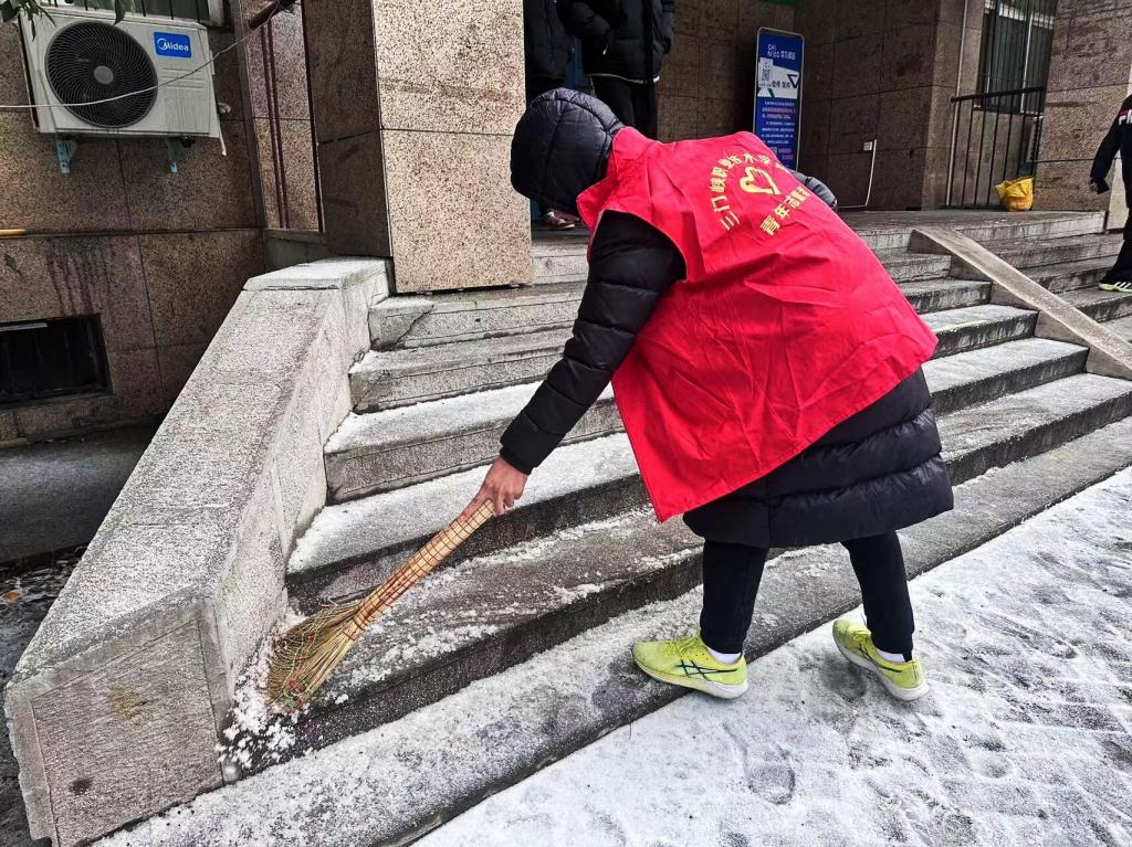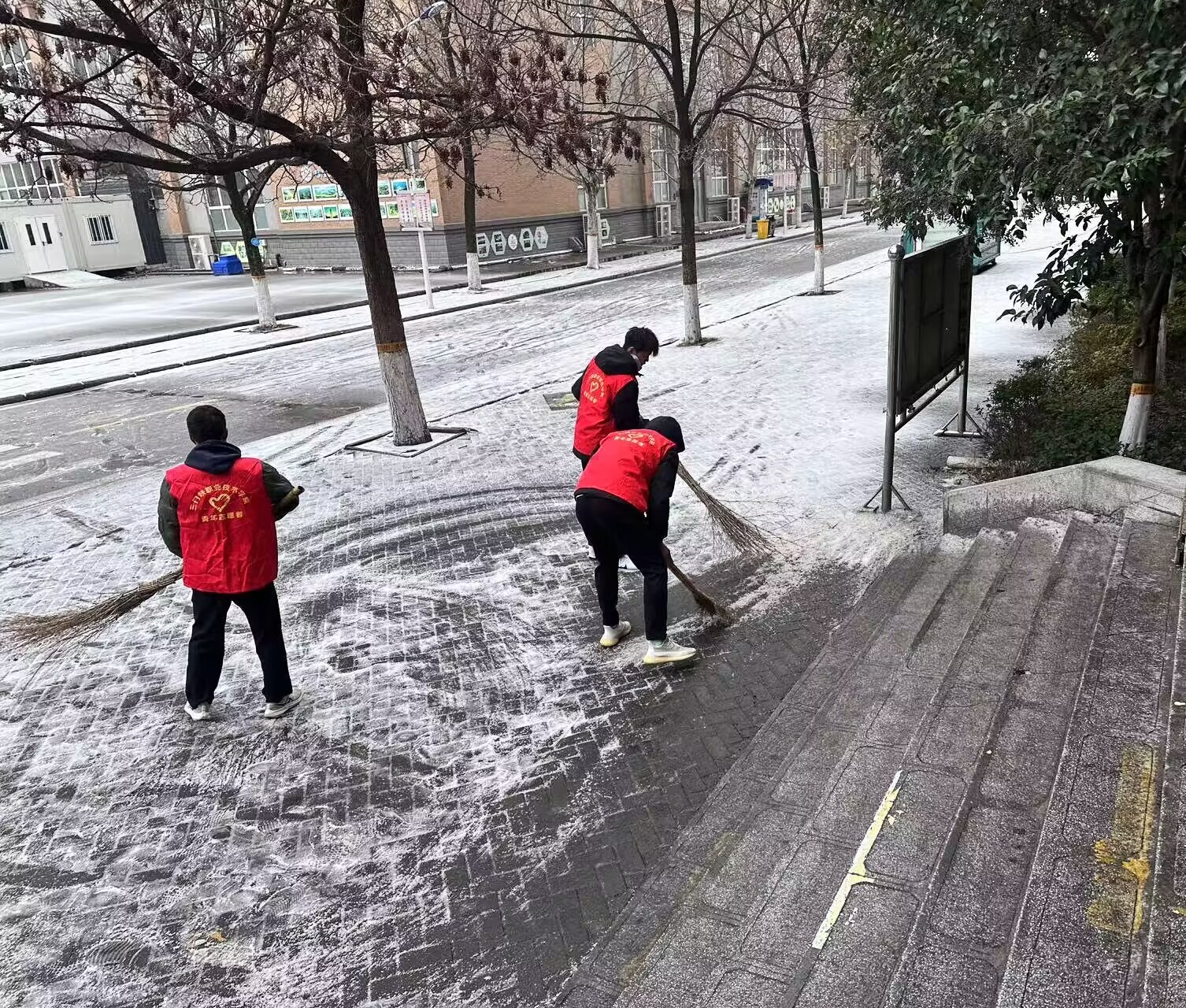 近日,受强冷空气影响,我省大部迎来入冬后首场大范围降雪。冬天的第一场雪悄然而至,雪飘如絮,尽展冬日之美,但也造成校园内部分路段积雪结冰,给同学们的出行带来了不便。为确保同学们的出行安全,12月14日早上,PA集团官方网站组织志愿者在9号宿舍楼前开展清扫积雪志愿服务活动。